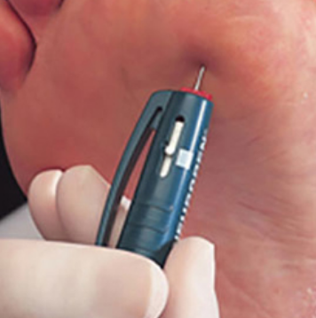 Delivers a 40g sharpness test using Neurotips single use neurological examination pins to assess reduced sensation to sharpness / pain in small nerve fibers