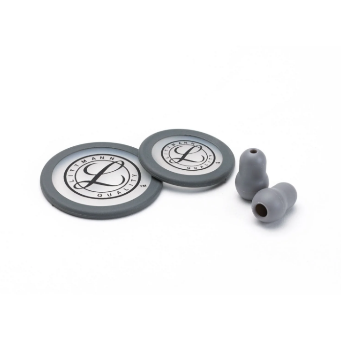 3M™ Littmann® Stethoscope Spare Parts Kit for the Classic III™ / Cardiology IV™ stethoscope contains a Grey single piece tunable diaphragm for both the adult and pediatric sides of the chestpiece, in addition to two small (1/2 inch), Grey Snap Tight Soft-Sealing Eartips.