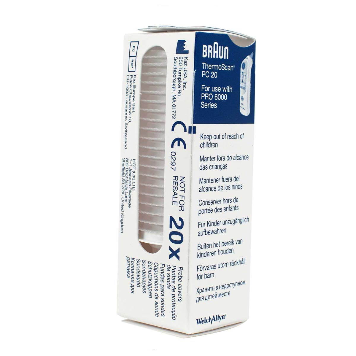 Probe covers for use with the Thermoscan Pro6000, 6020, 4000, and 3000 infrared ear thermometers.