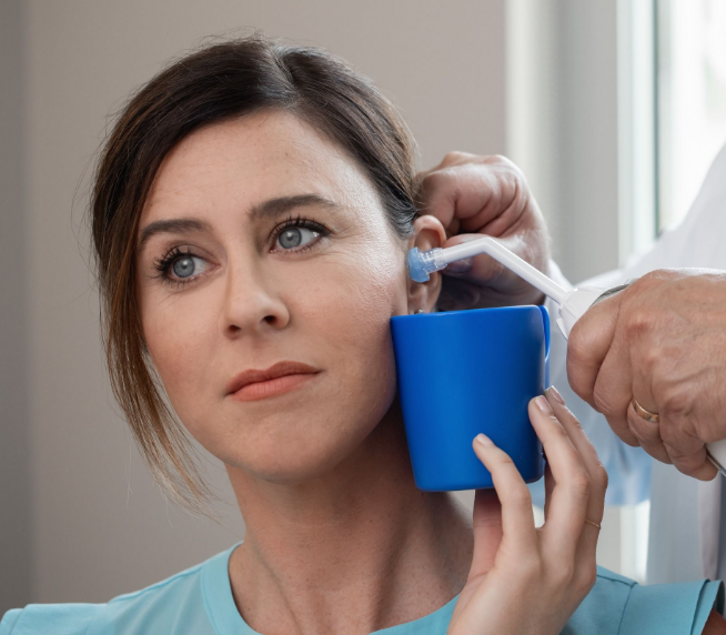 Capture water for ear irrigation procedures.