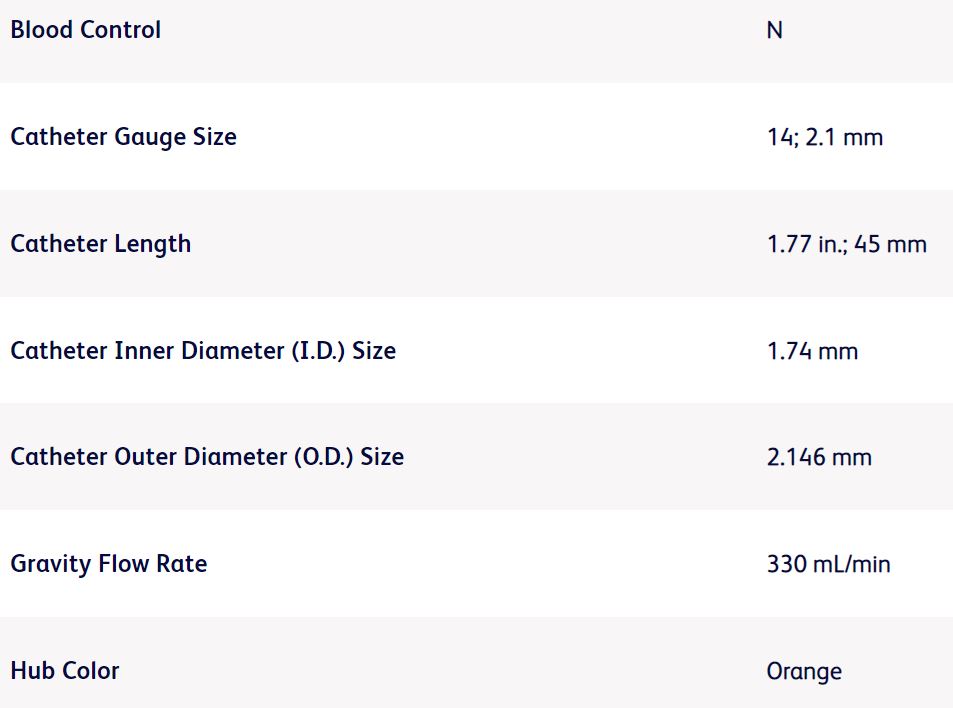CATHETER IV INSYTE AUTOGUARD 14GX1.75 (381867) BX/50