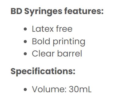 SYRINGE 30ML ECCENTRIC SLIP TIP (301231) BOX/60