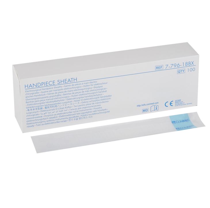 Disposable, clear plastic sheaths protect the handpiece body from external contamination during procedures.