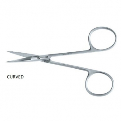 Blunt curved eye scissors.