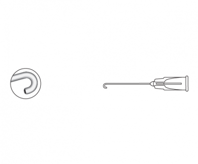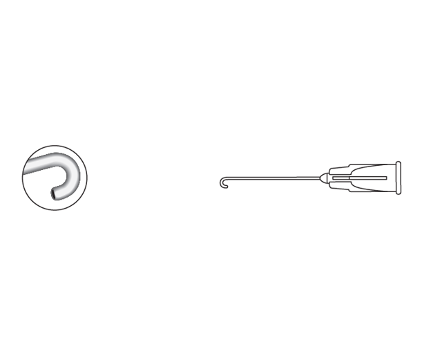 The Micro J Shape Cannulas are designed for small incision surgery & have a 0.25mm open end port. Hook is 1.5mm long x 1.75mm wide.