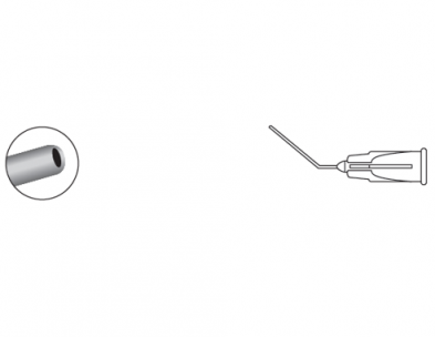 The Hydrodissection Cannula (Akahoshi Style) has a tapered top that provides easy insertion under capsule for hydrodissection or into nucleus for hydrodelineation. Angled at 1mm from end with a thin wall.