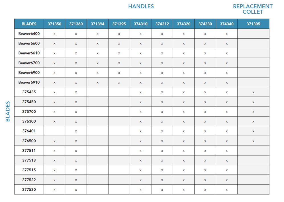 All BVI wrenches and collets are stainless Collet replacement, 0.5 cm Diameter Refer compatibility table in images to match this item (371305) with the Beaver range of Blades