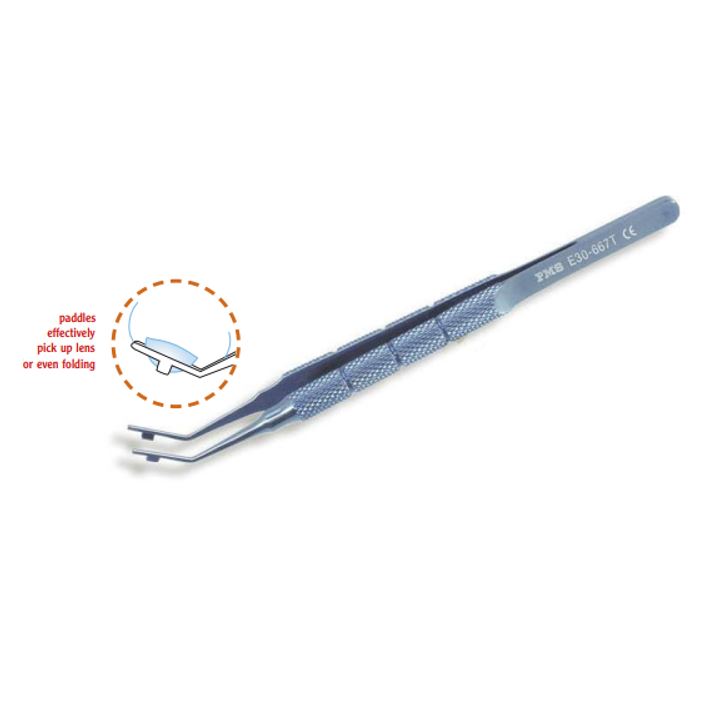 Seibel Style Lens Loader angled 12 mm, paddle style jaws, 11.0 cm.