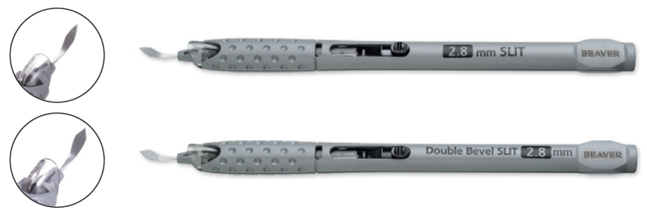 The Beaver Xstar Safety Slit Knife is available in a wide range of sizes designed for smooth penetration and accurate incision width.