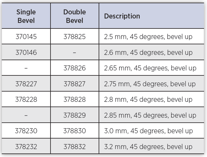 1.8 mm, 45 degrees, bevel up