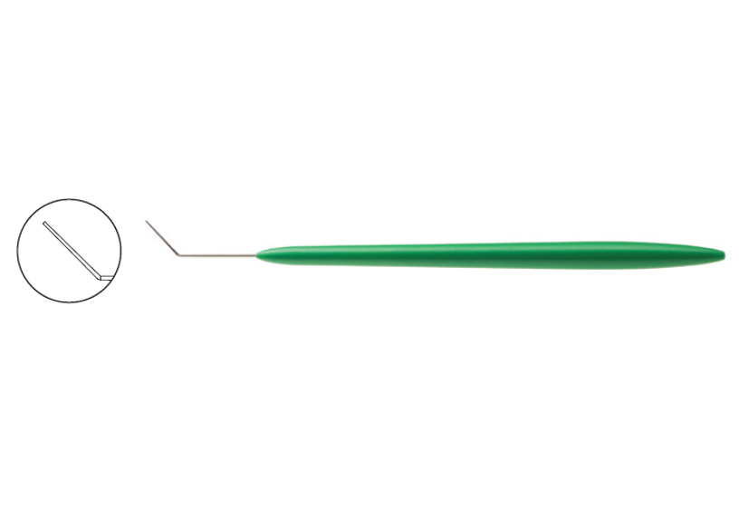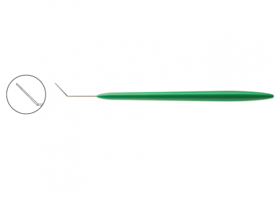 Angled, 0.35 mm diameter, blunt tip & overall length of 130 mm.