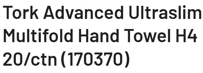TOWEL ULTRASLIM TORK 21X24CM 150S (170370) CTN/20