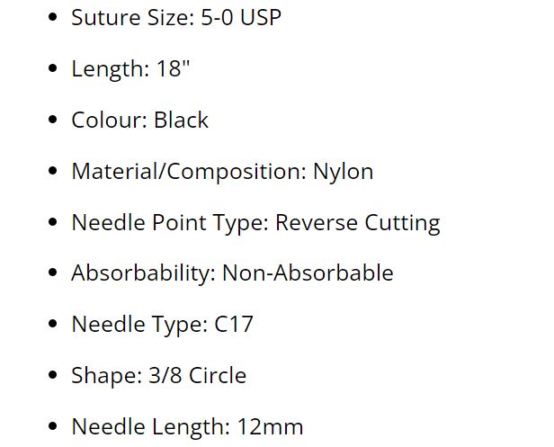 SUTURE NYLON NYLUS 5/0 12MM (L917B) BOX/12