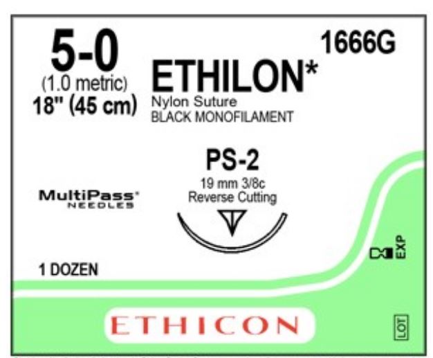 SUTURE EHTILON 45CM 5/0 (1666G) BOX/12
