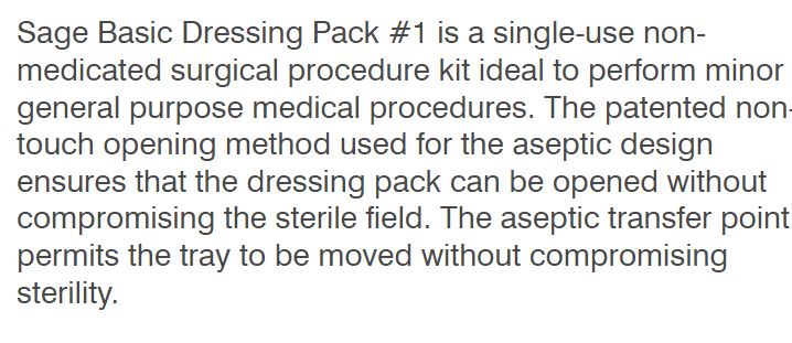 BASIC DRESSING PACK #1 SAGE STERILE (11001001) EA
