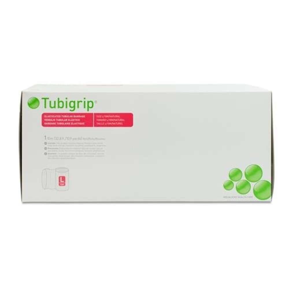 • High quality multi-purpose elasticated tubular bandage1-3 Tubigrip tubular bandage provides firm support for sprains, strains and swelling. The benefits of using Tubigrip • Stays securely in place • Provides consistent and even compression (5-30 mmHg sub-bandage pressure under a double layer) • Full range of sizes to suit most applications • Easy to apply and reapply3